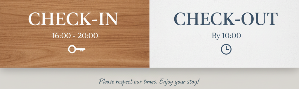 - Because I run and maintain the entire complex alone, it is not possible to offer a 24/7 reception. Therefore, I can be reached by phone from 8:00 to 13:00 and from 16:00 to 20:15; outside these hours, the phone is on silent. You can always reach me at home at my front door until 22:00 with questions; after that, I would also like to get some sleep myself. In case of emergencies, please use my doorbell.